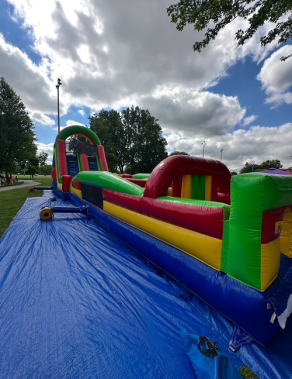- OCCUPANCY: A maximum of 5-6 kids of equal size at one time for bounce houses, and 1 person at a time for slides is what most inflatable manufacturers recommend.