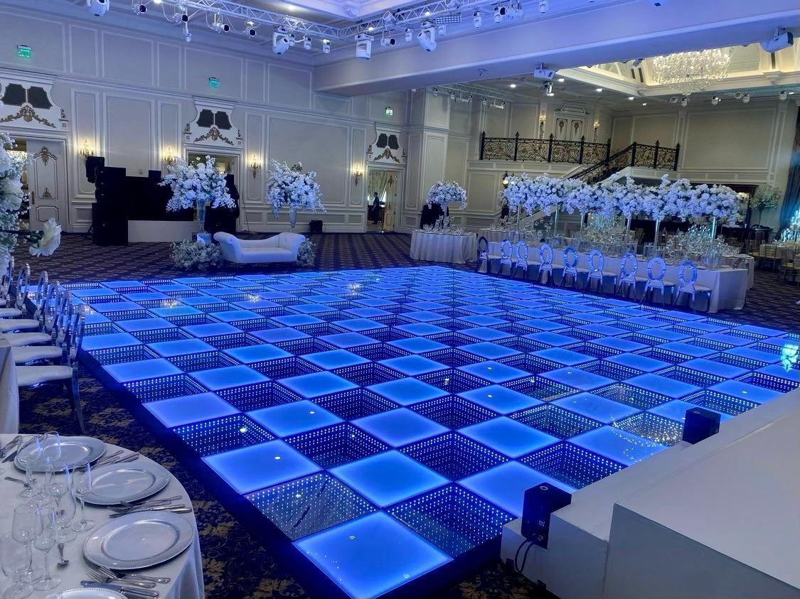 Our stunning 20ft x 20ft LED dance floor transforms any venue into a dazzling centerpiece.